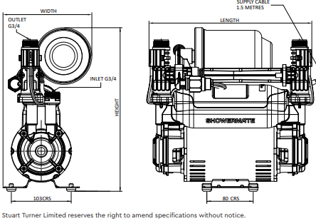 | Description | Showermate Universal 2.0 bar Twin shower pumps can be used to pump the hot and cold water supplies to a shower or bathroom as required. High quality, high performance compact pump supplied with four 15 mm anti-vibration flexible hoses with integral isolation valves on the inlets. All Showermate Universal pumps are suitable for use in open vented (gravity fed) systems for both positive & negative head applications. |