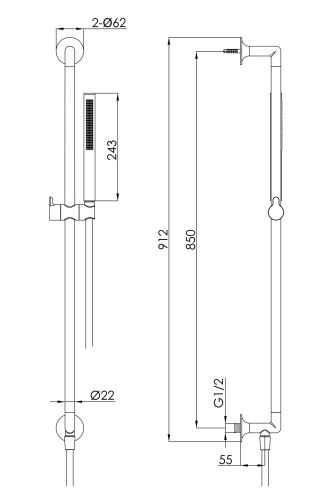 The Slide Rail with Pencil Shower Handle and Hose by Just Taps Plus (JTP) is a premium bathroom accessory designed to provide both style and functionality. Featuring a sleek pencil-style shower handle paired with a durable slide rail and flexible hose, this set offers easy height adjustment for a comfortable shower experience.