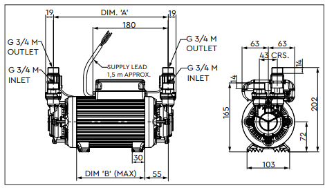 | Description | Monsoon Standard 1.5 bar Twin Shower Pump. Designed for installation into vented systems to pump both hot & cold water supplies, boosting both equally to an individual shower, complete bathroom, or whole house. Suitable for positive head applications only. |