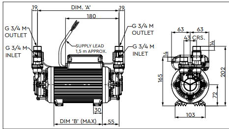DescriptionMonsoon Standard 4.5 bar Twin Shower Pump. Designed for installation into vented systems to pump both hot & cold water supplies, boosting both equally to an individual shower, complete bathroom, or whole house. Suitable for positive head applications only.