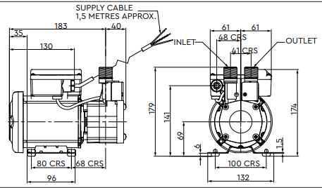 | Description | Showermate Standard 2.6 bar Single Shower Pump. Designed to improve water supplies to single taps or to pump blended water from a shower mixer. Suitable for positive head applications only. |