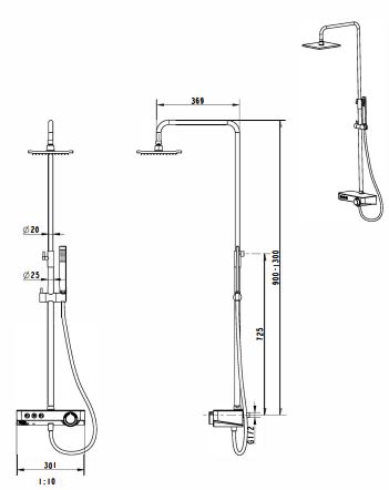 • Thermostatic Shower Pole with built-in shelf Chrome
