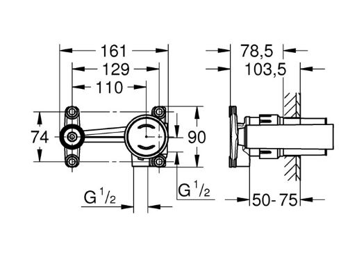 | Description | for 2 hole basin mixer without finishing trim set GROHE FeatherControl Joystick cartridge wall installation installation device DR-brass allows for waterproofing of wall construction surrounding the concealed body with sealing sleeve |