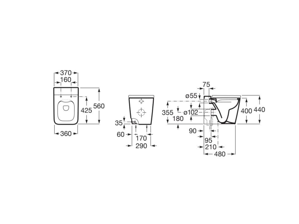 DescriptionSQUARE - Back to wall single floorstanding Rimless WC with dual outlet