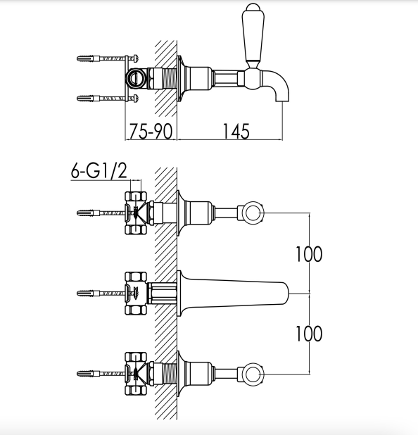 | Description | Specification - Water pressure: LP 0.2, Projection: 145mm, Product Composition: Brass with shiny gold PVD coating., Guarantee: 15 Years, Flow Rate 0.2Bar: 6.8L/min, 0.5Bar: 9L/min, 1Bar: 11L/min, 2Bar: 16L/min, 3Bar: 19.6L/min, Grosvenor lever 3 hole wall-mounted basin mixer, Also Available, Brass with Nickel finish – £420.00, Code: 85089ANK |