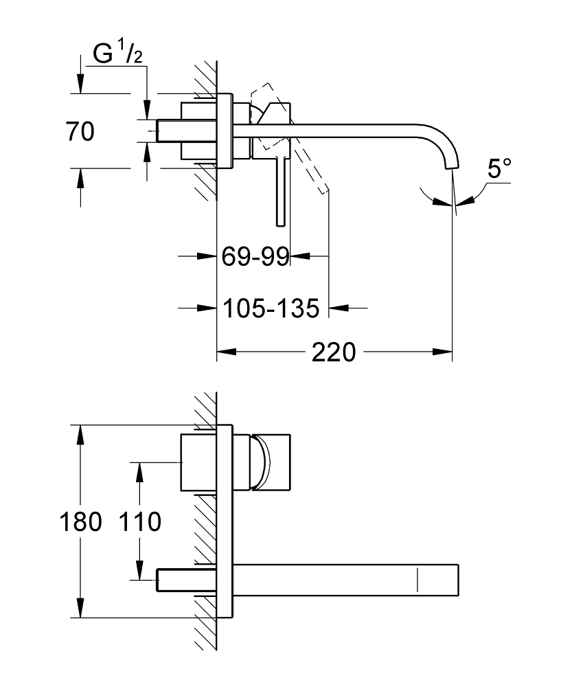 | Description | Innovative technology and beautiful modern design! With a sleek look based on the rectangle and circle, the wall-mounted GROHE Allure single-lever basin mixer looks perfect in any contemporary bathroom. The projection of the spout is 220mm and it is packed with GROHE’s innovative technology, including a minimum water flow limiter (8 l/m) that saves water and energy bills but maximises performance. |