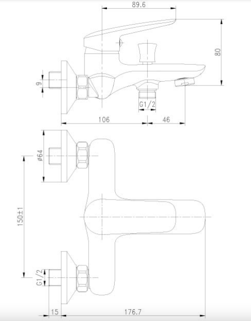 Yatin wall mounted bath shower mixer with kit, LP 0.2 |