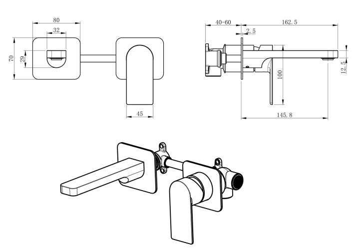 FORM Wall Mounted Basin mixer Chrome is available to buy in increments of 1