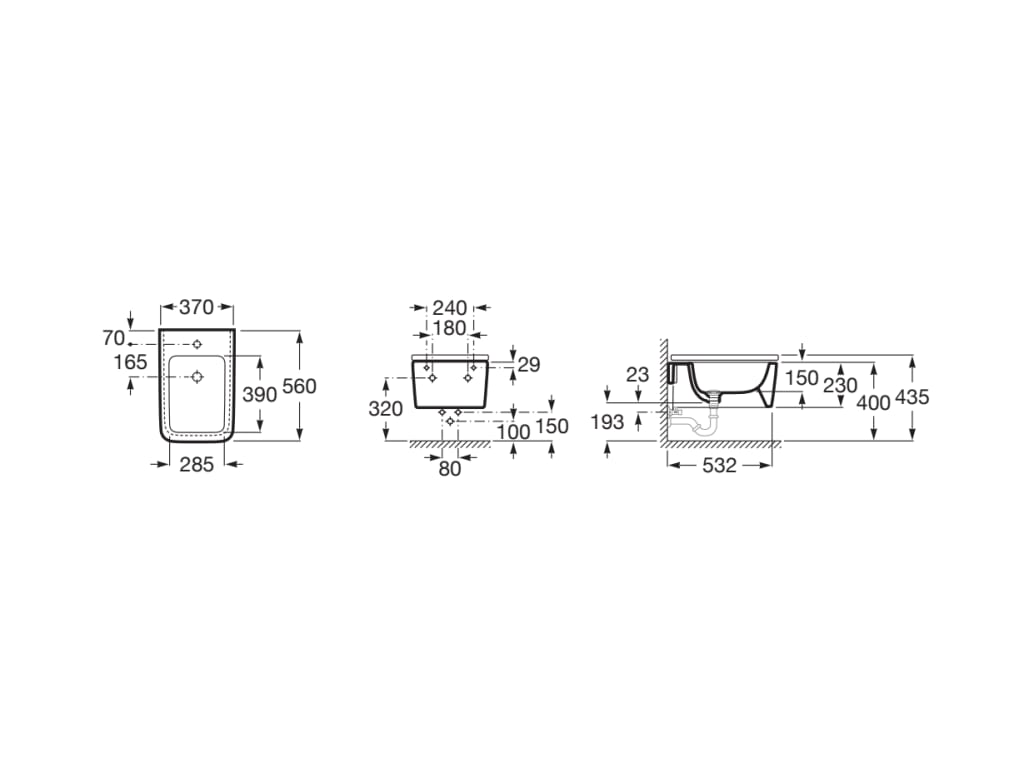 DescriptionBidet capacity (l): 7.5 Cover: Cover not included Fixing kit: Included Installation type: Wall-hung Shape: Square Taphole configuration: 1 taphole