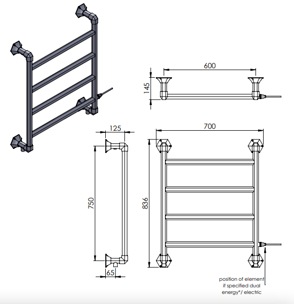 | Description | Art Moderne | wall mounted OG010Conjuring images of The Great Gatsby era, this Art Deco style model encapsulates the glamour and sophistication of the roaring 20’s... Clean lines, geometric shapes and a streamlined appearance, this towel warmer brings the enchantment of Parisian spirit with that extra je ne sais quoi! |