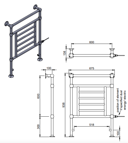 | Description | Elizabeth MS - BR | floor and wall mounted LG003/OG019A versatile design, this towel rail allows you the flexibility to use it in a way that suits you. Using our original ball joints for a decorative look, the premium quality materials and chunky tubed frame stands established and strong, juxtaposing with the more delicate grid bars in the centre. An ornamental masterpiece for your home! |