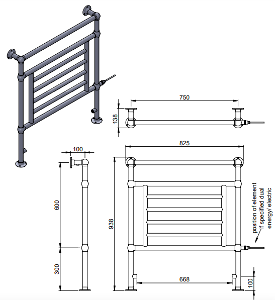 | Description | Elizabeth MS - BR | floor and wall mounted LG003/OG019A versatile design, this towel rail allows you the flexibility to use it in a way that suits you. Using our original ball joints for a decorative look, the premium quality materials and chunky tubed frame stands established and strong, juxtaposing with the more delicate grid bars in the centre. An ornamental masterpiece for your home! |