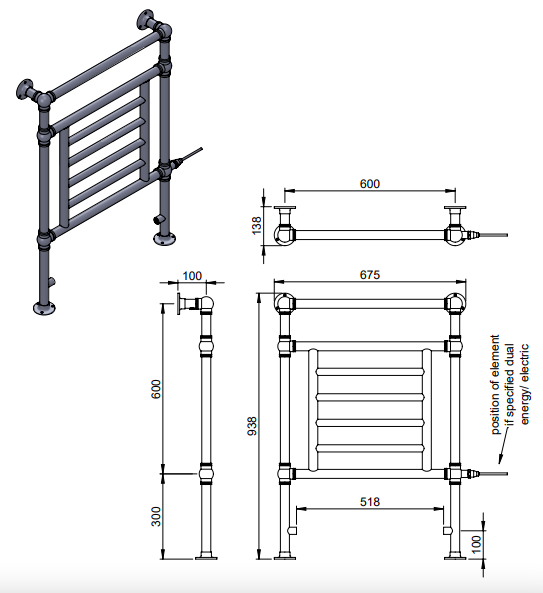 | Description | Elizabeth MS - BR | floor and wall mounted LG003/OG019A versatile design, this towel rail allows you the flexibility to use it in a way that suits you. Using our original ball joints for a decorative look, the premium quality materials and chunky tubed frame stands established and strong, juxtaposing with the more delicate grid bars in the centre. An ornamental masterpiece for your home! |
