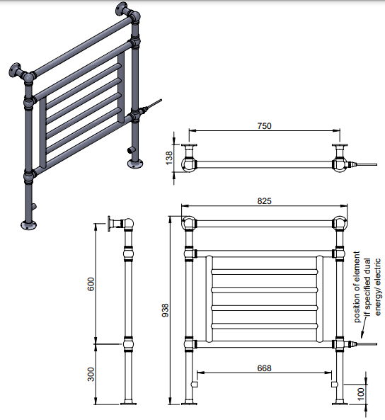 | Description | Elizabeth MS - BR | floor and wall mounted LG003/OG019A versatile design, this towel rail allows you the flexibility to use it in a way that suits you. Using our original ball joints for a decorative look, the premium quality materials and chunky tubed frame stands established and strong, juxtaposing with the more delicate grid bars in the centre. An ornamental masterpiece for your home! |