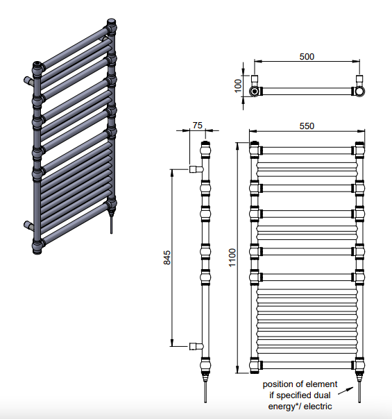 Traditional Originals Penthouse Electric Only - Chrome 1100x550 is available to buy in increments of 1