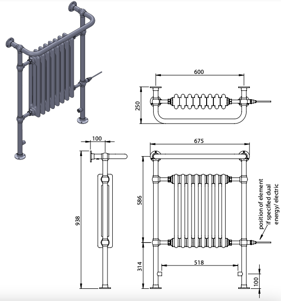 | Description | Regency BR | floor and wall Mounted LG004 / OG006A touch of class…This traditional towel warmer radiator will not only provide a high heat output and elegant towel hanging space but will add an element of luxury to any bathroom or wet room. Why compromise on style when you can choose both function and flare?! |