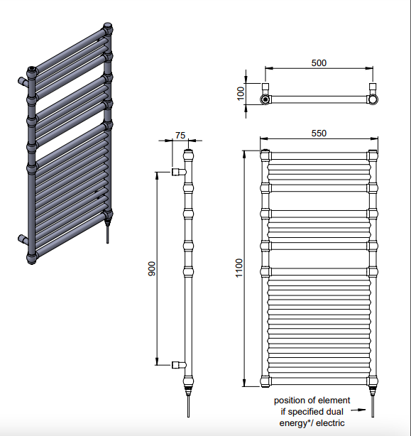 | Description | Penthouse | wall mounted LG018 / OG020A sophisticated twist on the standard ladder rail…If you are looking for the efficiency and practicality of a ladder rail with a high heat output and multiple crossbars for endless towel hanging prospects- perfect for larger households, then this towel warmer would be an impeccable fit. This offers a vast amount of useful opportunity with the ball joints adding an ornate edge. |