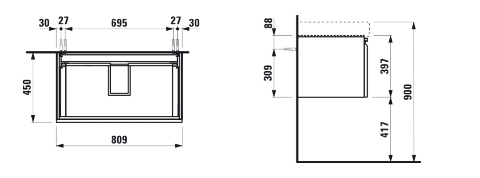 | Description | Adjustable legs Basin position: Central Basin type: Vanity Doors and drawers combination: 1 drawer Furniture configuration: Drawers Installation type: Wall-hung Internal dividers Internal drawers: 1 Internal shelves: 0 Legs included: 0 |