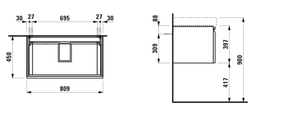 | Description | Adjustable legs Basin position: Central Basin type: Vanity Doors and drawers combination: 1 drawer Furniture configuration: Drawers Installation type: Wall-hung Internal dividers Internal drawers: 1 Internal shelves: 0 Legs included: 0 |