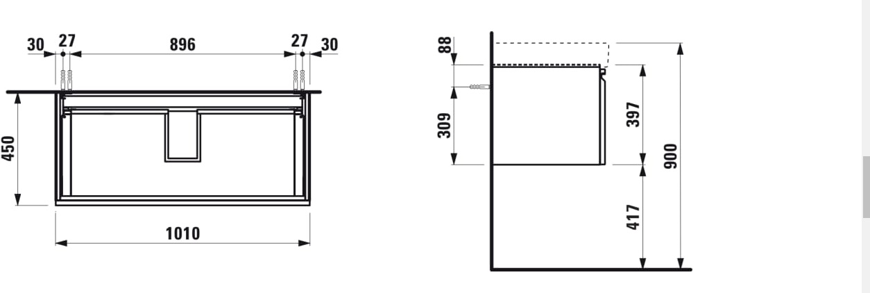 | Description | Adjustable legs Basin position: Central Basin type: Vanity Doors and drawers combination: 1 drawer Furniture configuration: Drawers Installation type: Wall-hung Internal dividers Internal drawers: 1 Internal shelves: 0 Legs included: 0 |