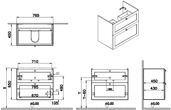 | Description | Root furniture is a complete bathroom solution offering washbasin units, side units, tall storage units in three designs and taps in two complementary designs; round and square. Compatible with 7056B003-0001, 7793B003-0001 and 7001B003-0001 washbasins. Handles available in chrome, matt white and matt black. A bathroom cabinet with dimensions of 80 cm width and 46 cm depth, featuring a thermoform finish on the front and MDF construction for the body. Designed by the VitrA Design Team, it comes in a stylish Matt dark blue color and has a black button handle. This cabinet does not come with a washbasin. |