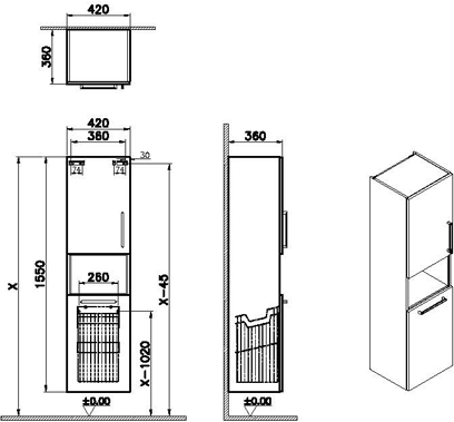 DescriptionThis item is a wall-hung piece designed by the VitrA Design Team with a height of 155 cm, width of 40 cm, and depth of 35 cm. It has an MDF body with a melamine front, and a left-mounted door hinge with a chrome bar handle. It comes in a High Gloss White color and has a 2-year guarantee.