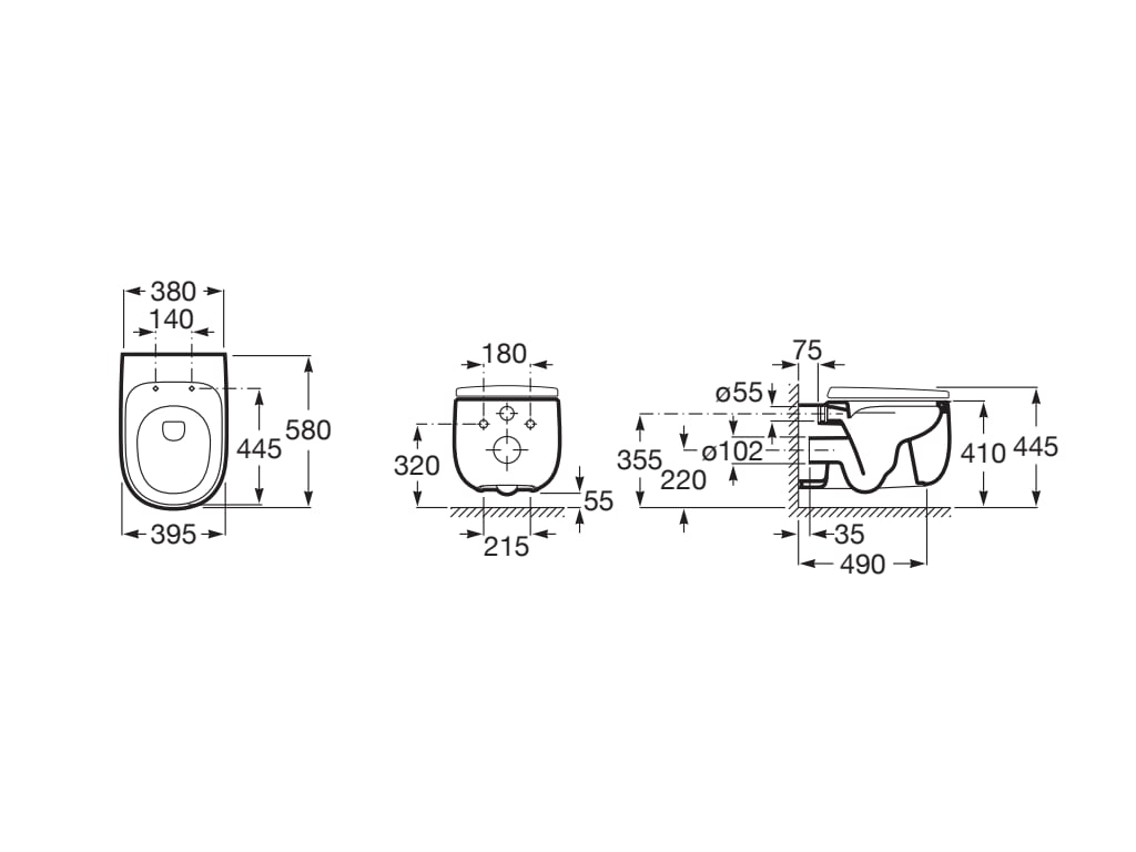 Vitreous china wall-hung Rimless WC ONYX
